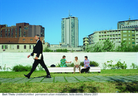 In Italia, negli ultimi tempi, e direi a partire dall’affermazione della realtà “Oreste” alla Biennale del 1999 predomina invece l’interpretazione comunicativa-socio-relazionale. Gli artisti italiani optano per un intervento diretto con la gente, facendola partecipe del progetto creativo, in certi casi con un’evidente incidenza socio-politica, per tentare di cambiare le cose. Nel nord si realizzano più site/specific, e Muenster con Skulptur Project – che abbiamo la fortuna di presentare all’interno dell’evento triestino – lo testimonia in modo inequivocabile; in Italia ci si attiva di più a sensibilizzare la gente ai problemi che la riguarda direttamente, predisponendo una coscienza critica che aiuti a migliorare la qualità esistenziale ed ambientale, come fanno Bert Theis, Osservario in Opera, Paola Di Bello a Milano, AnnaLisa Cattani, Emilio Fantin a Bologna e nel mondo, per citarne solo alcuni. I primi tre hanno lavorato soprattutto attorno al problema della Stecca degli Artigiani all’Isola Garibaldi, la struttura fatiscente in mezzo ad un vasto terreno libero, occupata da artisti ed associazioni con l’intento di preservarla dalla speculazione edilizia. Proposito purtroppo di recente fallito con l’abbattimento della struttura stessa.