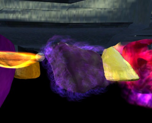 Alcuni lavori saranno di assoluta spettacolarità, e possiamo aggiungere stupefazione, come la performance del noto artista canadese Bill Vorn che produrrà un robot alto due metri e largo uno e mezzo (Teatro Miela, 31 maggio). Oppure quello dell’ausriaco Johannes Deutsch, che con elaborazioni al computer svolte per anni, visualizza spettacolarmente su schermi giganteschi noti brani di musica classica come la II° Sinfonia di Gustav Mahler, penetrando con le immagini in continua trasformazione le caratteristiche espressive della musica. Lin Pey Chwen, del Taiwan, costruisce invece un teatro virtuale dove protagonisti sono i celebri guerrieri di terracotta della Muraglia Cinese che però sono guidati dallo spettatore. Attraverso un complesso sistema interattivo, egli diviene regista dello spettacolo, ribaltando i tradizionali ruoli teatrali. Jiacong “Jay” Yan, statunitense originario di Shanghai, produce l’installazione interattiva “we only come out at night” che già nel titolo è tutto un programma. Crea infatti graffiti urbani, visibili solo di notte, perché non si tratta certo dei tradizionali murales, ma di proiezioni luminose mobili che si trasformano con il concorso del pubblico, con le ombre della gente che si sovrappongono alle immagini. Chun Chi Wang, un’ altra artista di Taiwan, elabora un giornale urbano, fatto di SMS inviati dalla gente comune con impressioni della vita quotidiana; si instaura così una rete immateriale che alimenta la comunicazione, creando uno spazio interurbano… Daniel Miller di Chicago, fonde robotica, ecologia e vari media elettronici per raccontare di un sito nell’Illinois dove è sorto il primo nucleare… E gli esempi potrebbero continuare…