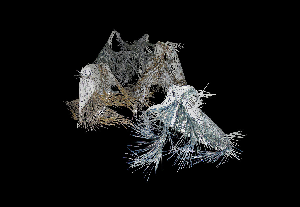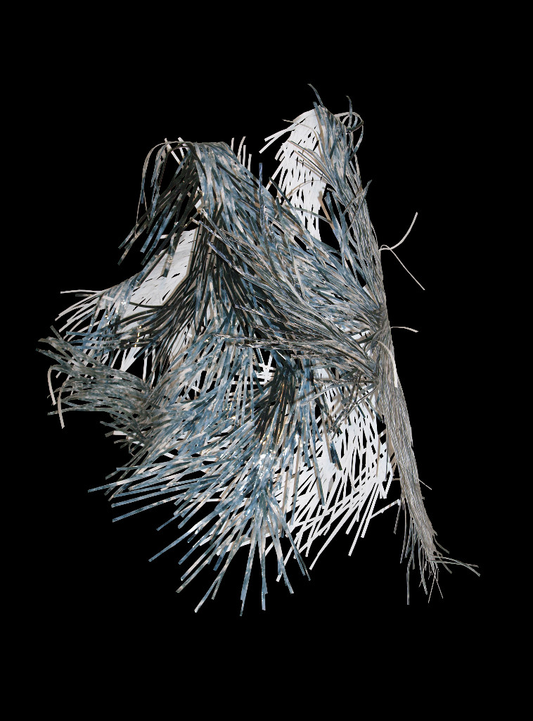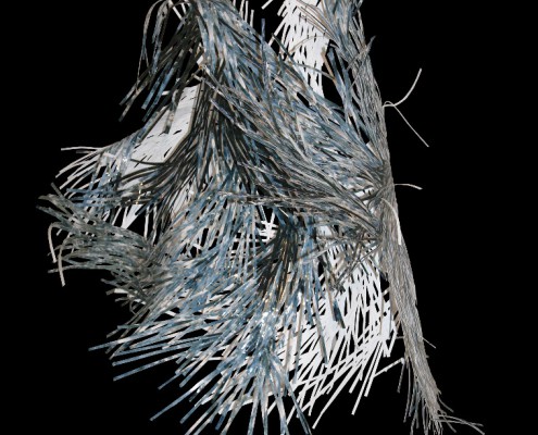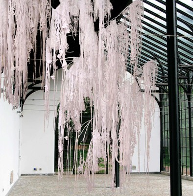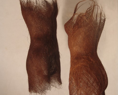 Questa nuova mostra vede l’abito solo di striscio, il richiamo è nella parola compresa nel titolo, con valenza allusiva e metaforica. L’abito qui non è da intendersi come involucro/vestimento ma come sinonimo di modo di essere, di abitudine, di concetti universali condivisi, e si apre quindi a un pensiero più ampio che investe la dicotomia dentro/fuori, visibile/invisibile, spirituale/materiale, lasciando largo margine all’interpretazione delle artiste. Esse sono accomunate in questo caso dalla fattualità dei media impiegati per costruire le loro installazioni. Si tratta di linguaggi e di materiali tipicamente femminili, che insistono per lo più sul concetto di intreccio, una sorta di fiber-art nella sua radice embrionale, tradotta poi nelle versioni e con i mezzi più inusuali. Giuliana Balbi intreccia striscioline di fotografie, Elena Silvia Sperandio usa il filo di lana costretto nel tradizionale “lavoro a maglia” con cui costruisce autentiche sculture, Anda Klancic intreccia fibre vegetali, Cristina Treppo assembla svariati elementi del guardaroba femminile, dal tessuto al pizzo, dai guanti all’abito, ma anche il filo di ferro, rami d’albero…