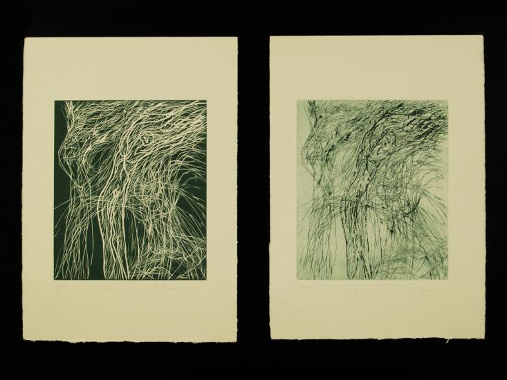 La mostra è stata realizzata in collaborazione con il Gruppo 78 e consiste in una trentina di incisioni, per lo più xilografie con elaborate varianti tecniche, che trattano il mito di Dafne, particolarmente caro e congeniale a Daniela Frausin. Ossia della mobilità e della trasformazione, dove il segno vi si adegua appunto, divenendo metamorfico, e rivelando nel contempo l’alta maturità raggiunta dall’artista.