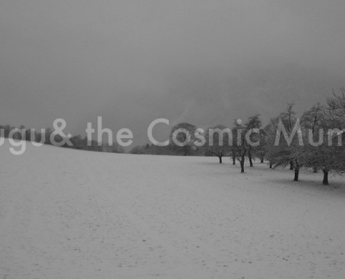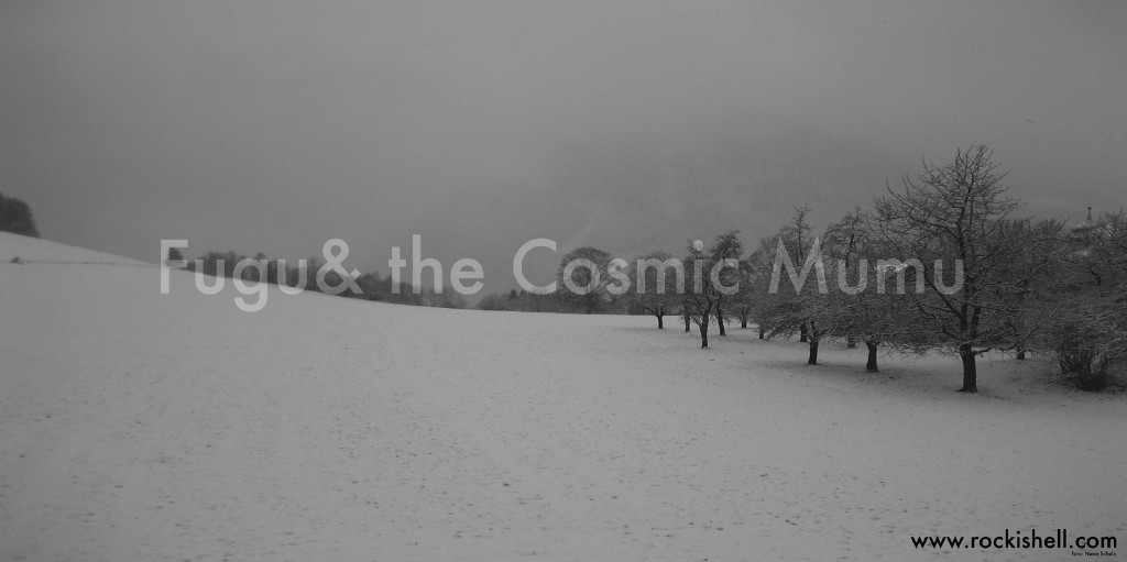 Il discorso di Heimo Wallner è più complesso e indiretto. È l’immagine, anche questa in b/n, di un paesaggio invernale (stranamente piazzato e spiazzante nella canicola di luglio) un lungo prato ricoperto di neve, cosparso di pini. Un paesaggio vagamente triste ed attonito, con sopra una grande, ermetica iscrizione: “Fugu& the Cosmic Mumu”. È il nome della band dell’artista che si riallaccia al titolo del manifesto “Favola d’inverno” che a sua volta si riallaccia a spunti storico/culturali. E’ in sostanza un rimando al grande poeta tedesco Heinrich Heine che, nel 1844, dopo essere fuggito dalla natia Dusseldorf a Parigi, per l’intolleranza di un clima politico che nella Prussia di allora si stava facendo sempre più pesante, scrisse il celebre poema “Deutschland, ein Wintermaerchen”. Tradotto in italiano: “Germania, una favola d’inverno”. Una celebre satira politica in versi, scaturita anche dalla condivisione d’idee con l’amico Karl Marx. Dunque in questa chiave l’enigma, pur con tutte le sue valenze metaforiche, proprie del discorso artistico che allude e non svela, si può appianare. E’ un paesaggio triste, come tristi sono le canzoni della band di Heimo Wallner, come piuttosto tristi sono i tempi – in Italia in Austria nel mondo- che attraversiamo.