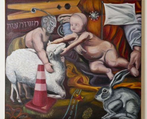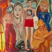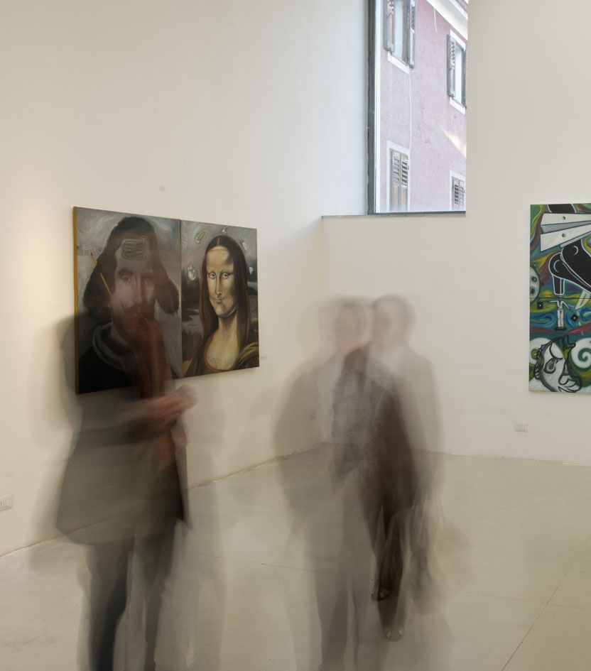 La mostra si compone di una ventina di grandi tele dipinte ad olio ed encausto integrate da un video in cui l’artista si racconta, illustrando la sua pittura e gli ingredienti che utilizza per definirla.