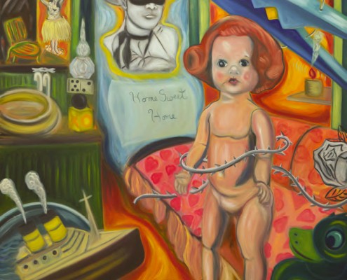 Questa mostra lo dimostra sin dal titolo. Che anzi trasmette allarme e preoccupazione. La sigla S.O.S. é un segnale universalmente noto che richiede aiuto per un pericolo incombente. Difatti ci sono degli “oggetti pericolosi” che sembrano minacciare la nostra tranquillità. In realtà sono gli oggetti comuni da cui siamo attorniati quotidianamente, in città come dentro casa. Spiazzandoli dal contesto abituale Wolfryd li analizza come simboli per espandere il loro campo semantico, reinventandoli in modo che inducano alla riflessione. I giocattoli, e il mondo infantile, sono una presenza costante. Nella loro artefatta mimesi del reale comportano una allucinata dimensione onirica attraversata da humour noir.