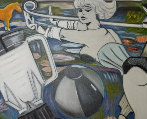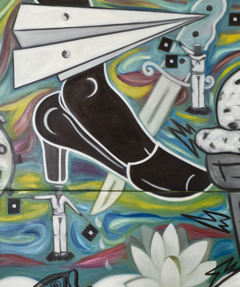 Questa è la sua prima mostra personale italiana, benché nel 2014 sia già comparso a Trieste all’interno della mostra “Messico Circa 2000” alle Scuderie del Castello di Miramare, nella collezione Josè Pinto Mazal. E’ un artista definibile d’impronta pop, avendo assorbito influenze newyorkesi di questo tipo accanto alla musica jazz e a quella di Frank Zappa. Ma di una pop-art particolare si tratta, acclimatata in qualche modo all’ambiente messicano, intrisa di riflessioni concettuali che la distanziano dalle classiche icone pop. Certo la caratteristica saliente è la netta riconoscibilità delle immagini, analiticamente descritte, accomunate tuttavia in racconti che per lo più compongono una visione critica del mondo e della società in cui viviamo.