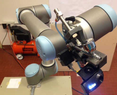 Al regno della robotica si unisce il robot ApRO (Architecrtural Painting Robot) del prof. Paolo Gallina, docente di robotica all’Università di Trieste, realizzato con il concorso di un dottorando. Il progetto interdipartimentale ApRO, spiega il prof. Gallina, intende sviluppare un sistema automatizzato(robot) di decorazione di grandi superfici (murales) attraverso movimentazione di una pistola a spruzzo (areografo) montata sulla flangia di un robot antropomorfico. Apro si propone come prototipo dimostrativo ambendo ad esplorare cifre stilistiche legate alla tecnologia e indagandola possibilità di sperimentare nuove sintassi espressive. Appare di grande importanza l’inserimento nella mostra di questo progetto universitario triestino che viene a ribadire, con un diretto intervento sul campo, il legame fondante tra arte/scienza/tecnologia, su cui si basa tutto il progetto.