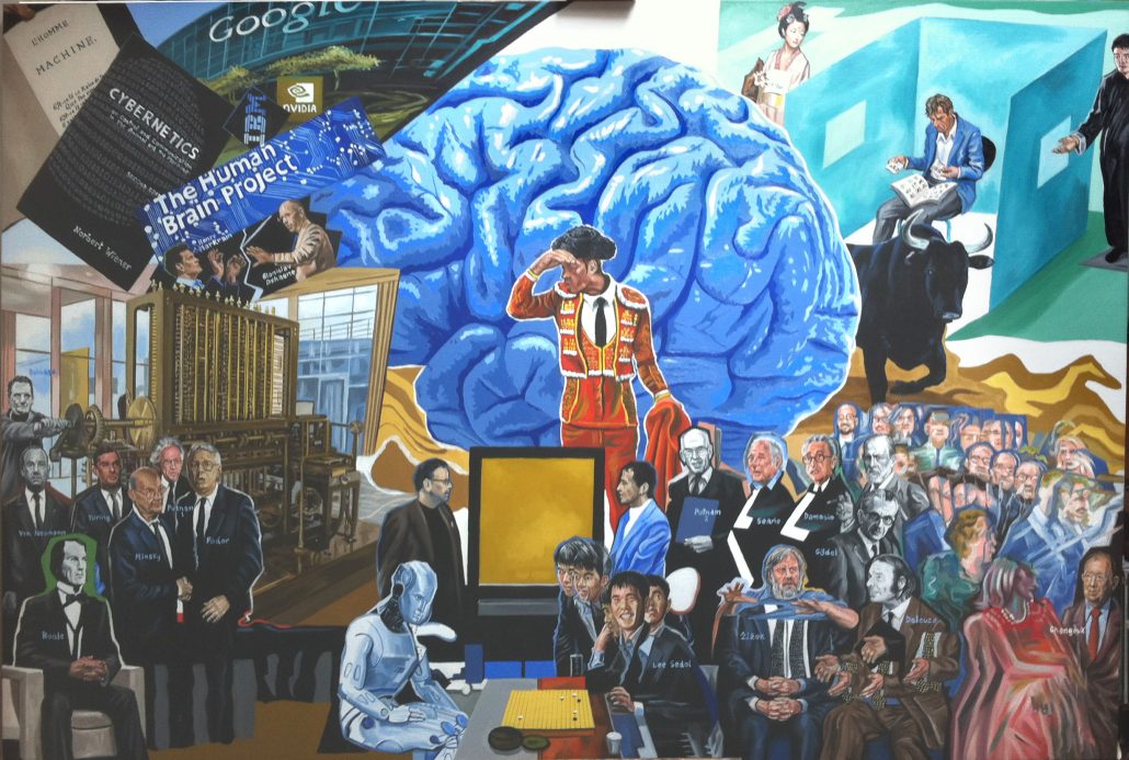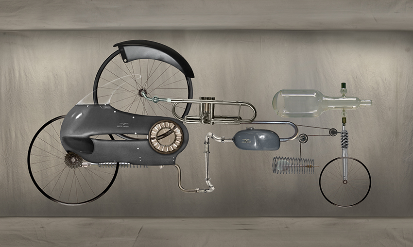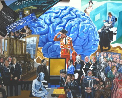 C’è poi il gruppo degli artisti che scelgono altri media per ragionare sul tecno-destino dell’uomo, a partire da Walter Bortolossi, grande narratore di tutti gli aspetti dello scibile umano, che ha realizzato un grande quadro intitolato “La partita” appositamente per questa mostra. Ci sono le ricerche sul “superuomo” meccanizzato di Erika Stocker Micheli, e anche le perplessità, le riserve etico/sociali di fronte all’avanzamento meccatronico a scapito dell’umano, espresse da Lucio Perini, da Pierre Zufferey, le macchine ambigue ed inutili di Giordano Rizzardi che in qualche modo evocano gli automi, l’interrogativo sulla capacità sentimentale dei robot posto da Lucia Flego, cui si contrappone il cuore bianco, privo di sangue, del robot trasparente di Barbara Romani, mentre il fotografo Luigi Tolotti evoca personaggi mutanti ispirandosi al celebre film Metropolis di Fritz Lang (1926) e Isabel Carafi accorpa i robot ai grattacieli americani in un’idea invasiva della domotica… ed altri ancora.