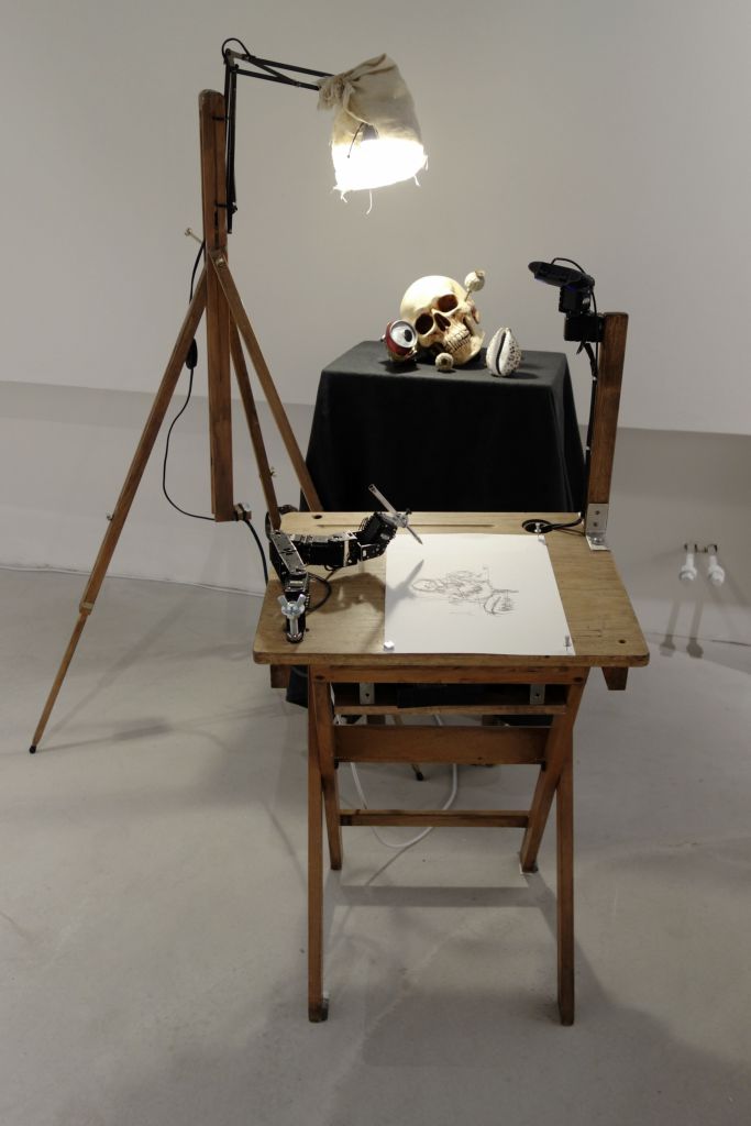 Una presenza eccezionale di questa mostra è il francese, naturalizzato inglese, Patrick Tresset, ideatore di robot-disegnatori che con perizia artistica e sorprendente capacità di lettura introspettiva, chiaramente legata al suo creatore, disegnano i ritratti delle persone che si collocano davanti alla video-camera ad esso collegata A Trieste porta l’installazione Human Study- La Vanitè, ossia il Robot Paul IX che con piglio nervoso riproduce una natura morta posta davanti a lui, trasmessagli via telecamera. S’intitola La Vanità perché il concetto trattenuto dagli oggetti della natura morta – un teschio, una lattina schiacciata, dei papaveri secchi, un lucida conchiglia, – parla della brevità delle vita, dell’effimero della festa che finisce, una sorta di memento mori.