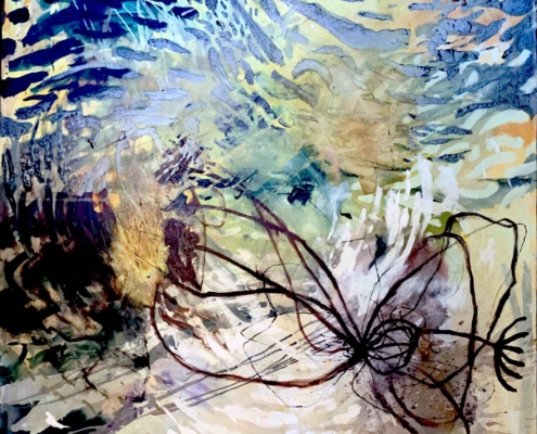 Questa mostra “Terra in trasformazione” nasce dalla fusione di due, una nata In Messico ad opera dell’artista/curatore Manolo Cocho dal titolo “Crisis Gaia”, una, curata dalla sottoscritta, dal titolo “aQua”, declinando nel quadro generale dalla trasformazione climatica, quello specifico di un elemento fondante, che attiene alla vita, tradotto in una sigla alterata, quasi un marchio in cui si sottendono mille sfaccettature.