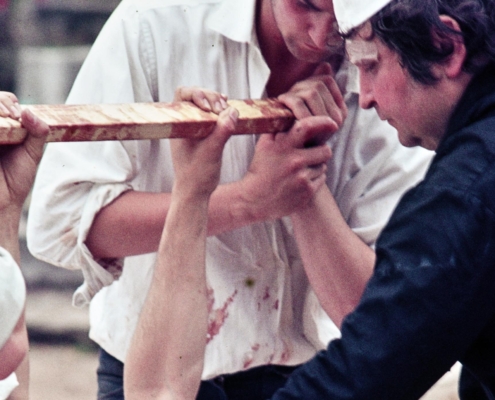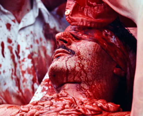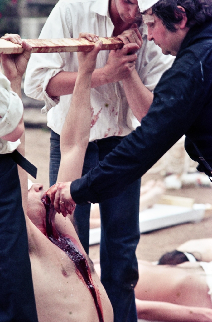 Sabato 12 novembre alle 18.30 inaugura al DoubleRoom arti visive di via Canova 9 a Trieste “Aktion n.62”, una mostra omaggio al performance artist austriaco Hermann Nitsch (Vienna, 1938 – Mistelbach, 2022) recentemente scomparso e considerato uno dei massimi esponenti del Wiener Aktionismus. L’esposizione, curata da Maria Campitelli e Massimo Premuda e organizzazata dal Gruppo78, presenta il reportage a colori realizzato il 10 giugno 1978 dal fotografo triestino Giovanni Montenero, allora giovanissimo inviato dell’Unità, che documentò per 12 ore la performance di Nitsch orchestrata al Teatro Romano di Trieste. Le inedite immagini a colori di Montenero vengono presentate per la prima volta al pubblico per ripercorrere il modus operandi di Nitsch ma rappresentano anche un tassello fondamentale per andare a ricostruire la recente storia dell’arte contemporanea a Trieste attraverso due azioni del Wiener Aktionismus che diedero una scossa dirompente alla scena artistica triestina.