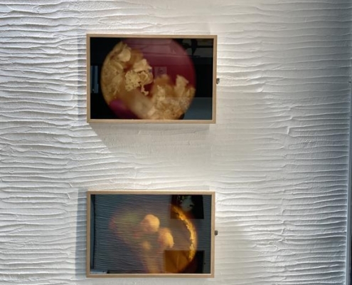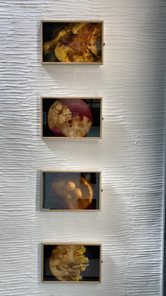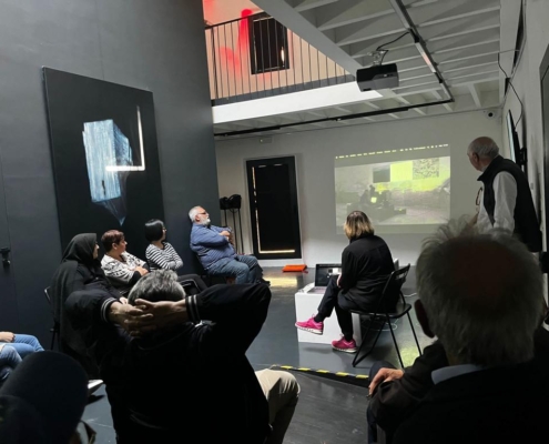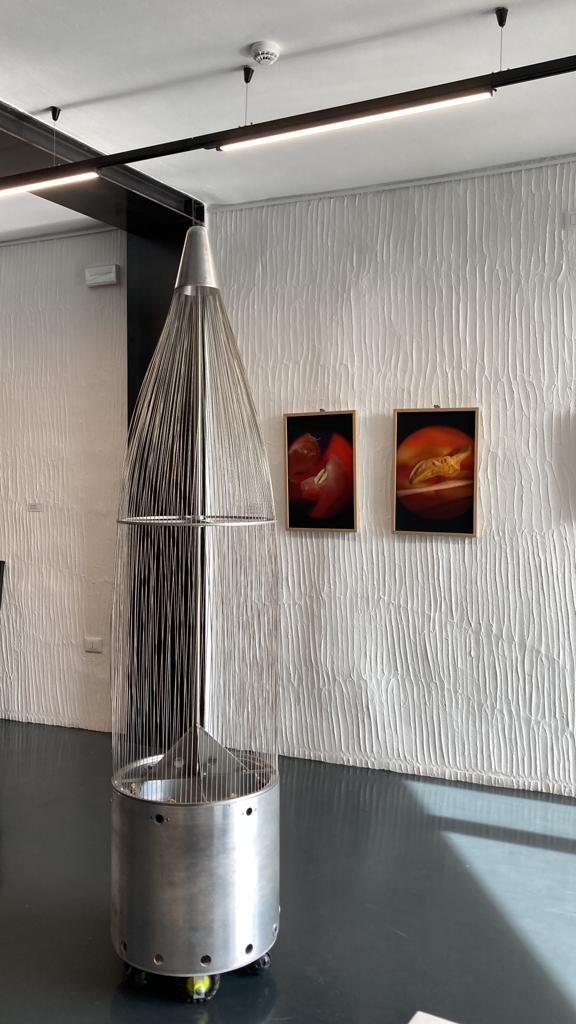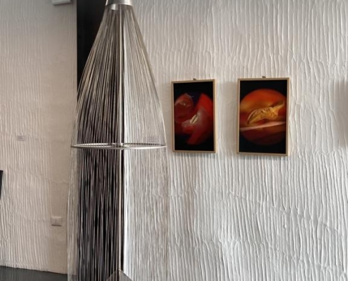 Elisa Zurlo è presente con il video immersivo “The Ocean Garden” fruibile con visore, e con il video “Liber Paradisus”; ha partecipato anche al seminario, presentando il proprio lavoro; Cecilia Donaggio Luzzatto Fegiz ha portato il suo robot/missile realizzato per il progetto (fe)male unitamente al recente “Echtogame” ideato contro l’inquinamento delle acque del mare; il 29 aprile ha svolto un’autopresentazione al museo (v. immagini); Lucia Flego ha esposto il suo video “Climate change” montato su proiettore olografico con effetti tridimensionali (e a sua volta il 27.05 presenterà il proprio lavoro) e Paola Pisani espone delle sofisticate fotografie, realizzate attraverso il microscopio, ingigantendo i dettagli interni di fiori ermafroditi ricollegandosi ad un ampio discorso sul rapporto natura-cultura. Anche lei presenterà la propria ricerca in ambito artistico il 03.06 all’interno di un programma di eventi collaterali alla mostra ARTE E ROBOT.