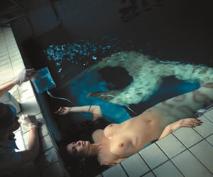 I nuovi artisti non cercano solo l’espressività violenta; ci sono modi più soft per stupire. Sono quelli che usa il fotografo Fritz Kok e rappresenta l’attualità di un filone di arte fotografica tipicamente olandese iniziata con le proposizioni inquietanti delle bambine forzate ad essere adulte, di Inez Van Lamsveerde. Quello di Kok è un mondo surreale fatto di algida fiction che ci trasporta nel sogno però con la concretezza tangibile di apparizioni ben collocate in ambienti reali, simili a laboratori di ricerca scientifica. tra vasche e piscine. Infatti il personaggio chiave è una sirena, un ibrido seducente, sofisticato ed asettico che sembra il frutto di laboriose ricerche dell’ingegneria genetica, ispirato dal glamour di una fashion/cover (Kok lavora nel mondo della moda). Sembra un alieno piovuto d’altri pianeti, dai connotati tuttavia iperrealistici, sottoposto a continui controlli medici per verificare le sue incerte capacità di sopravvivenza.