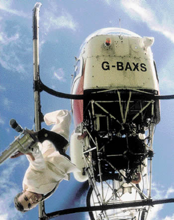 Paul M Smith è un altro enfant terribile della scuola inglese. Ma le sue scelte sono meno mortifere dei suoi colleghi di qualche anno prima, puntando soprattutto alla spettacolarità spericolata. Il ciclo “Actions”, fotografie racchiuse in light-box, sì da renderle ancor più asettiche ed irreali di quello che già può fare il passaggio in Photoshop, ripropone in qualche modo le mitiche gesta filmiche di James Bond, sfruttando anche l’esperienza di fotoreporter dell’esercito britannico che l’artista ha svolto da giovanissimo. Con mirabolanti sotto in su, si fa cogliere (è lui il protagonista) mentre vola nel cielo, issato da opportune gru invisibili, da un palazzo all’altro, o mentre si lancia dall’elicottero addosso a noi, parafrasando la pratica sportiva col brivido della morte oggi di moda., “Jumping”. Immagine shock : anche il giovane Matthew Barney aveva iniziato, arrampicandosi sulle liscie pareti delle gallerie, con strani marchingegni, portando la concretezza dello sport nel sacro recinto dell’arte.