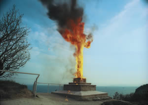 Da questi modelli storici discendono le nuove proposte degli artisti più giovani. I collages di Elke Krystufek ribadiscono, con qualche parentela con lo spietato immaginario di Cindy Sherman e di Nan Goldin, l’antico discorso di una femminilità sfruttata, riflessa però, ossessivamente, senza falsi pudori nella propria disincantata ricerca identitaria. E non più di tre mesi fa ha bruciato all’alba la croce storica di Strunjan in Slovenia, ad opera degli artisti Goran Bertok e Dean Verzel. Atto blasfemo, provocazione, ancora shock e spettacolo per intrattenere un pubblico sfuggente? Se l’apparenza è shockante e spettacolare, il senso scava nel profondo. Un rituale come gesto di diniego verso le tante sovrastrutture, visibili ed invisibili che opprimono l’uomo; ancora una croce, atavico simbolo di morte, nella cultura occidentale, che reclama la vita. È il nuovo “urlo” dell’artista contemporaneo, che nello smarrimento generale, vuol far sentire la sua voce, al di sopra delle regole prestabilite. Come Munch, sullo scorcio del XIX scolo ha urlato la propria solitudine all’indifferenza del mondo.