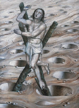 L’argentino Ricardo Cinalli è il possente Michelangelo dell’età contemporanea. La sua conoscenza e capacità riproduttiva del corpo umano tocca vette spettacolari. I suoi landscapes popolati di braccia, piedi, mani rimandano all’affastellamento umano delle metropoli del pianeta. E’ la celebrazione ossessiva del corpo umano, esente ancora da ibridazioni tecnologiche, che negli asfittici grovigli come in “The human Pyramid, Homage to the Millenium”, sdoppiato nell’antistante specchio d’acqua, alludono ad una drammatica costipazione psico/fisica cui l’umanità è costretta negli sterminati agglomerati urbani. È una revisione illimitata della cultura classica, di quella rinascimentale, di De Chirico postmetafisico, con l’a tensione e la libertà linguistica dell’uomo del III millennio.