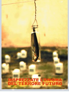 Rituali quotidiani e sensazioni epidermiche o profonde si accavallano nelle composizioni visive elaborate al computer. L’oggetto d’uso si associa alla carnalità che vi si insinua, in una sovrapposizione di momenti complementari, secondo ritmi della fiction ma anche della mobilità del pensiero. L’elogio del disastro una volta, sull’eco di Blanchot (“La scrittura del disastro”) ora l’ambiguità di senso, negli enunciati, costituiscono la trama sottile di un discorso aperto a interpretazioni diverse, con rimandi socio-politici, nella consapevolezza dell’impossibilità di catturare una realtà definitiva. “Disprezzate l’enigma del terrore futuro” è il titolo sibillino dell’opera allusiva qui presentata; fa parte di un progetto espansivo costituito da momenti diversi, distribuiti nel tempo, da un programma radiofonico alla performance.
